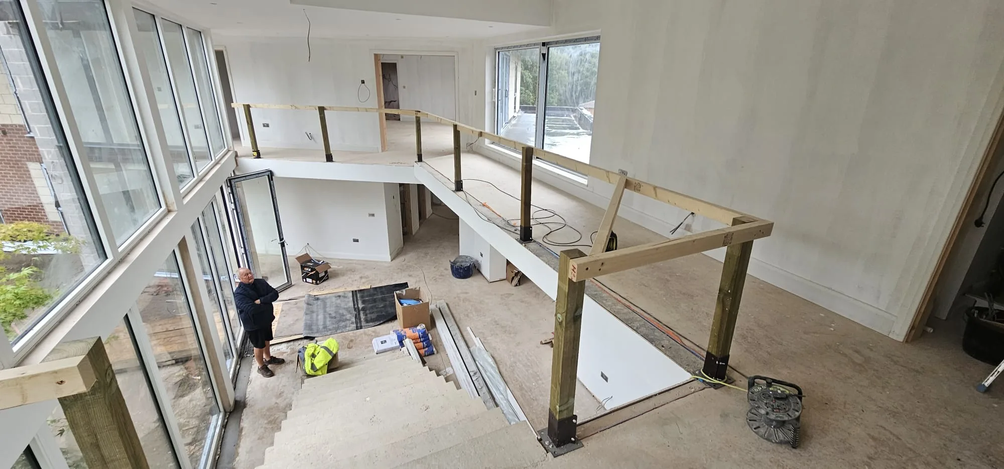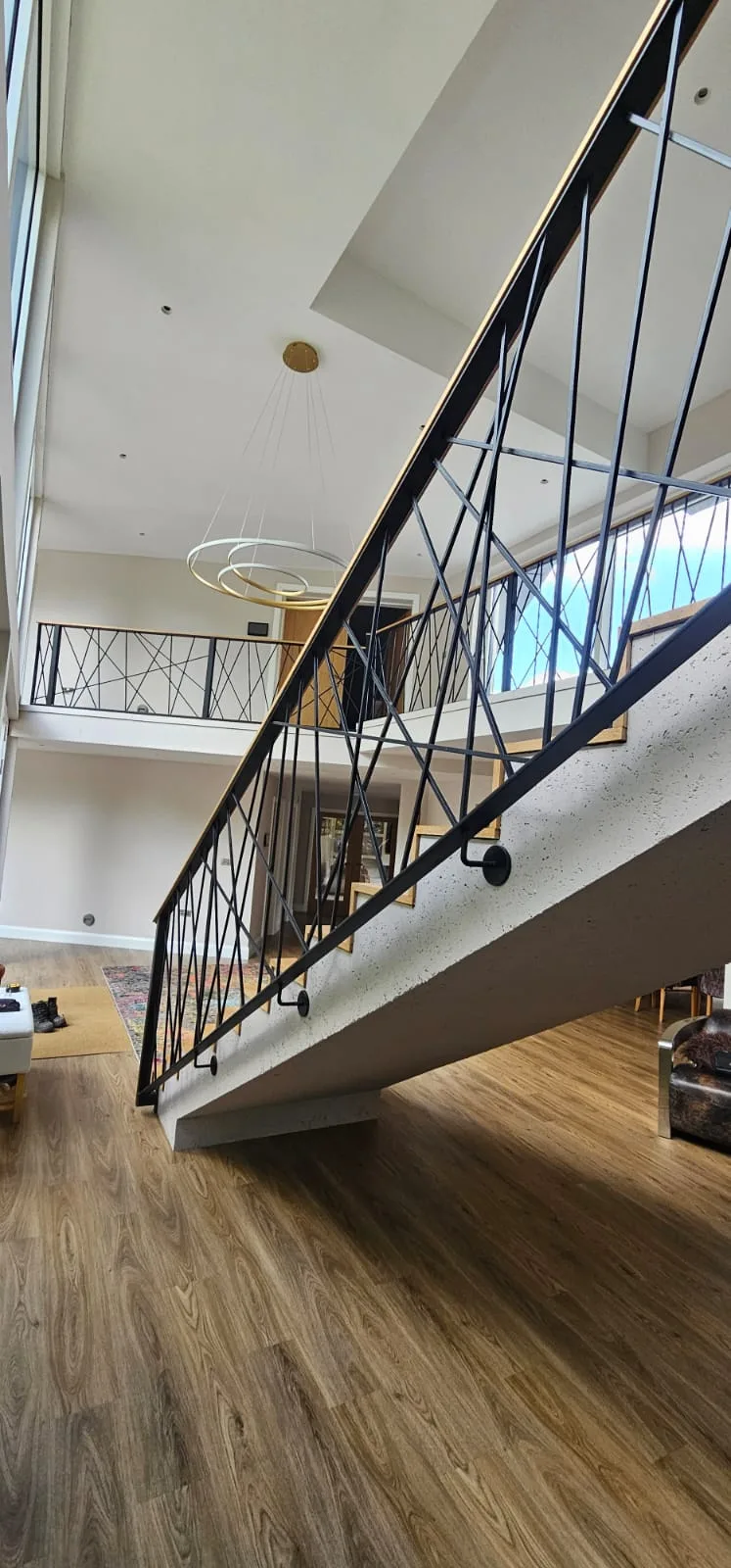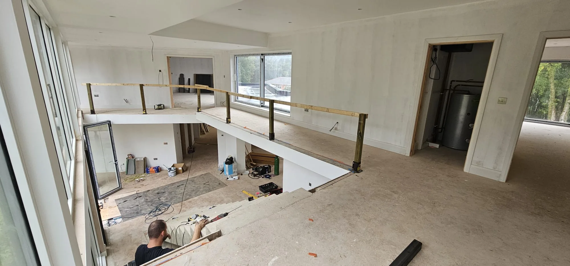 In addition to the balustrade, full structural steel supports were installed across the landing to provide the necessary strength and stability for the installation. These elements were designed and fabricated in-house to integrate seamlessly with the finished balustrade system, ensuring both structural integrity and a consistent appearance throughout.