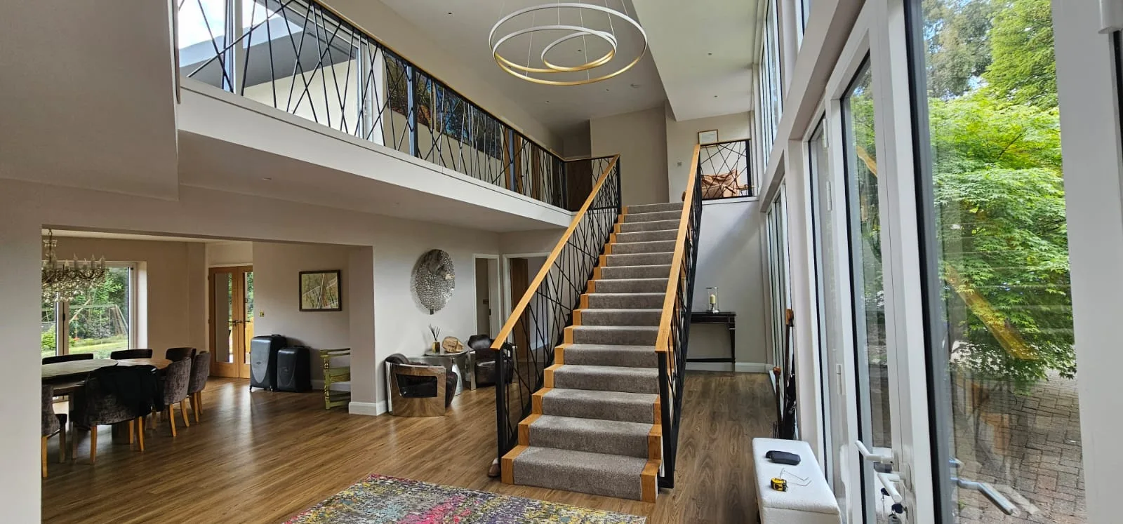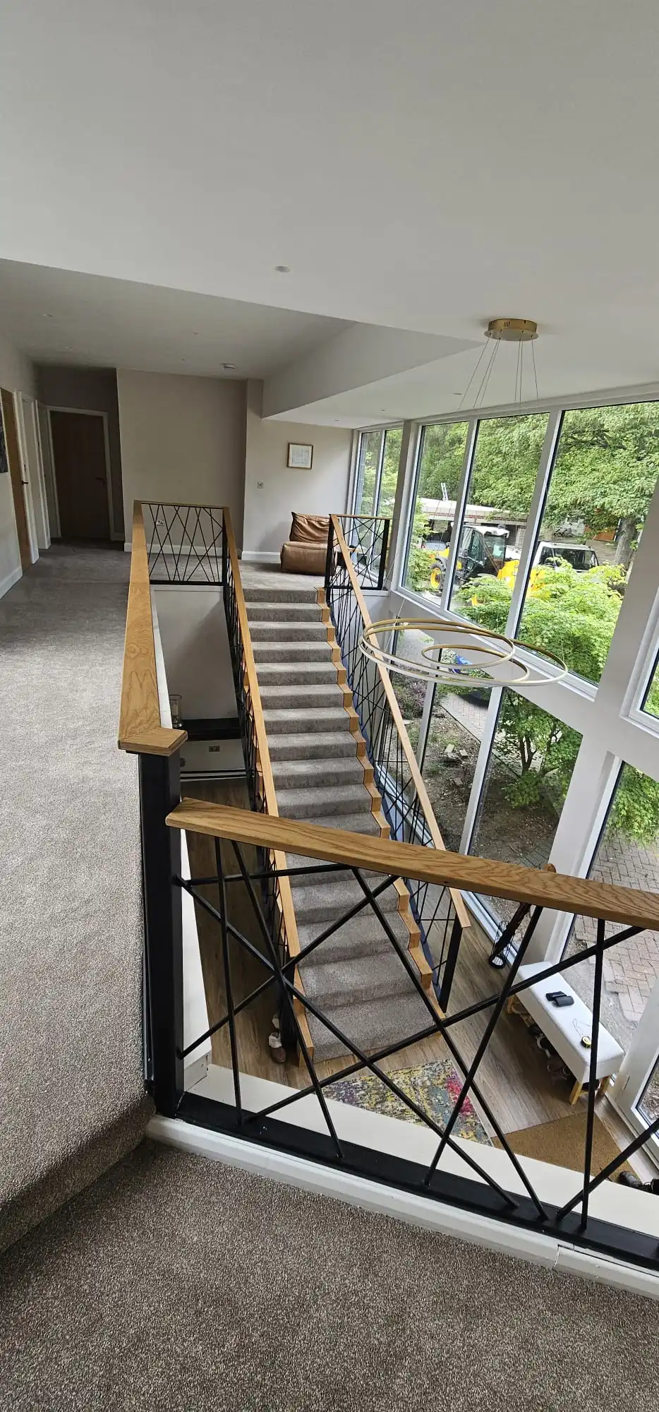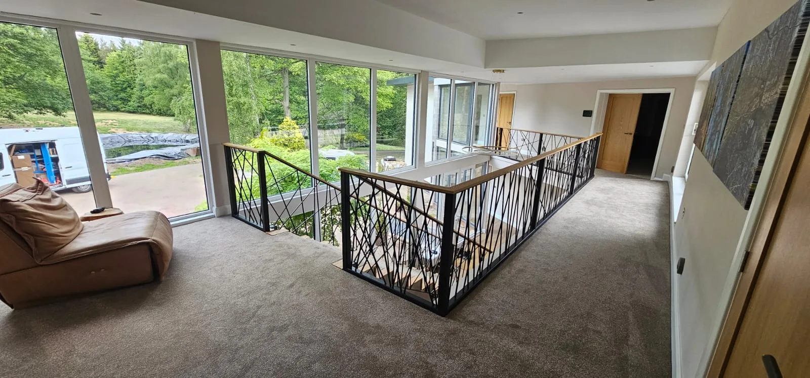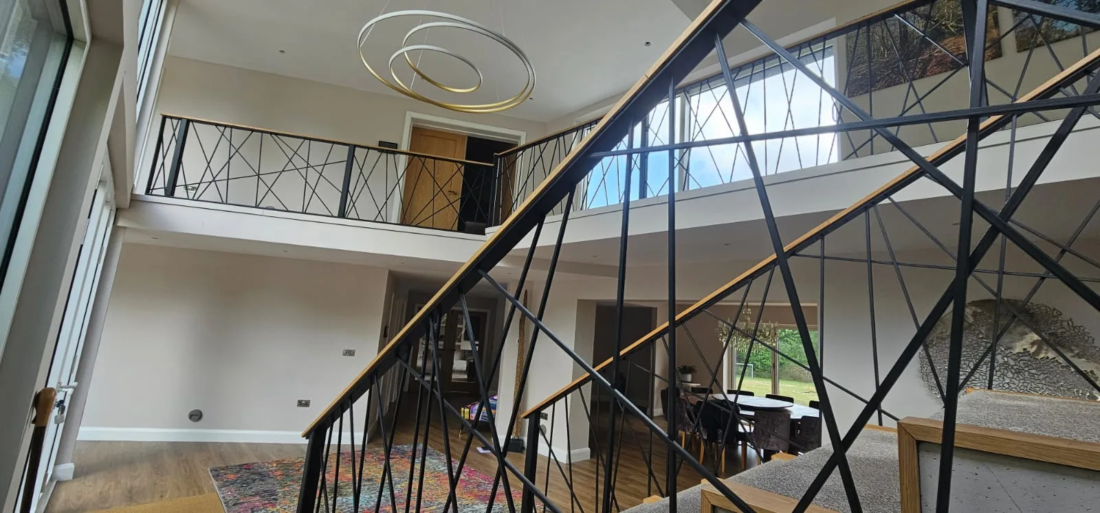 This project involved the design, fabrication and installation of a bespoke steel balustrade system alongside supporting structural steelwork across a stairwell and upper landing.